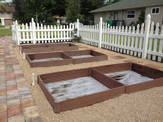 I placed thick double layer plastic under the raised beds, and solarized the soil during the hottest part of summer. I kept the plastic very tight, and attempted to keep it sealed as best as I could. This is to help with nematodes, and other diseases and pests by essentially baking them. According to the UF website, the heat of the sun can penetrate up to 6" in the soil. I did this BEFORE placing the good soil in the boxes.